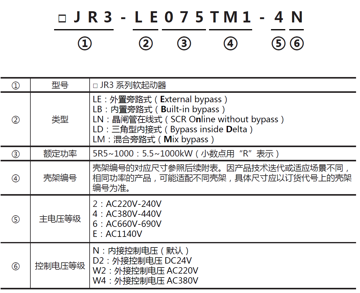 SJR3-LN系列是710公海线路检测公司自主研发二用智能式的软启动器,兼容在线式应用的同时兼备有外置旁路连接方式,增加了欠载,运行次数,运行时间,线性的温度监控等多种功能,内置集成了RS485通讯总线,提供多语种菜单。