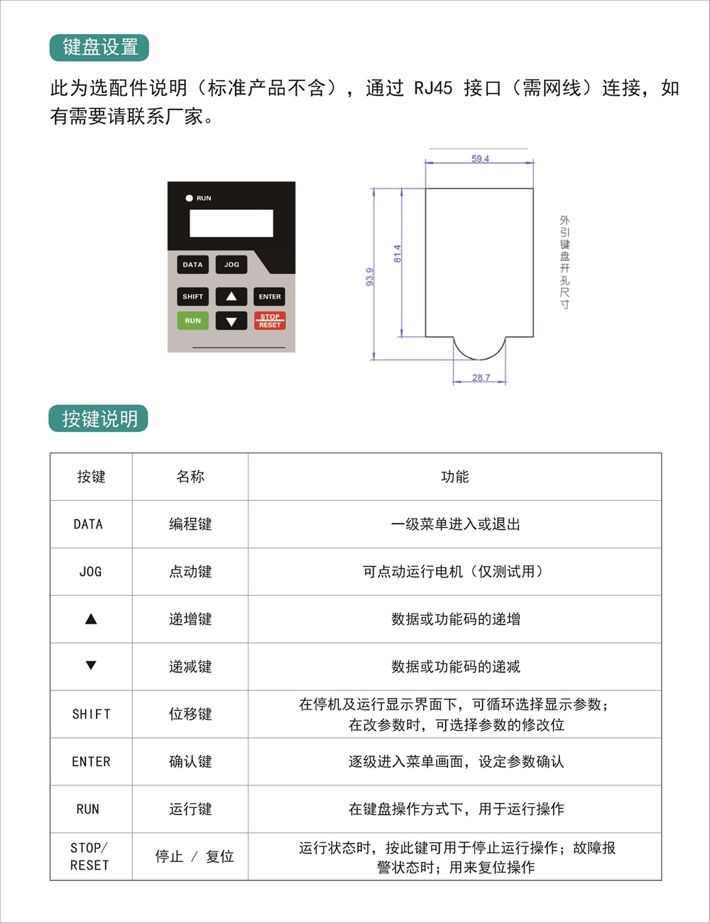 产品内置有基本的电机保护功能,如缺相,过载等。也可设 置为保护全局禁⽤的应急模式,过载范围与过载延时时间可调。产品结构紧凑,与绝⼤多数国际知名品牌尺⼨相仿(尤其宽 度均为45mm),可替代安装。