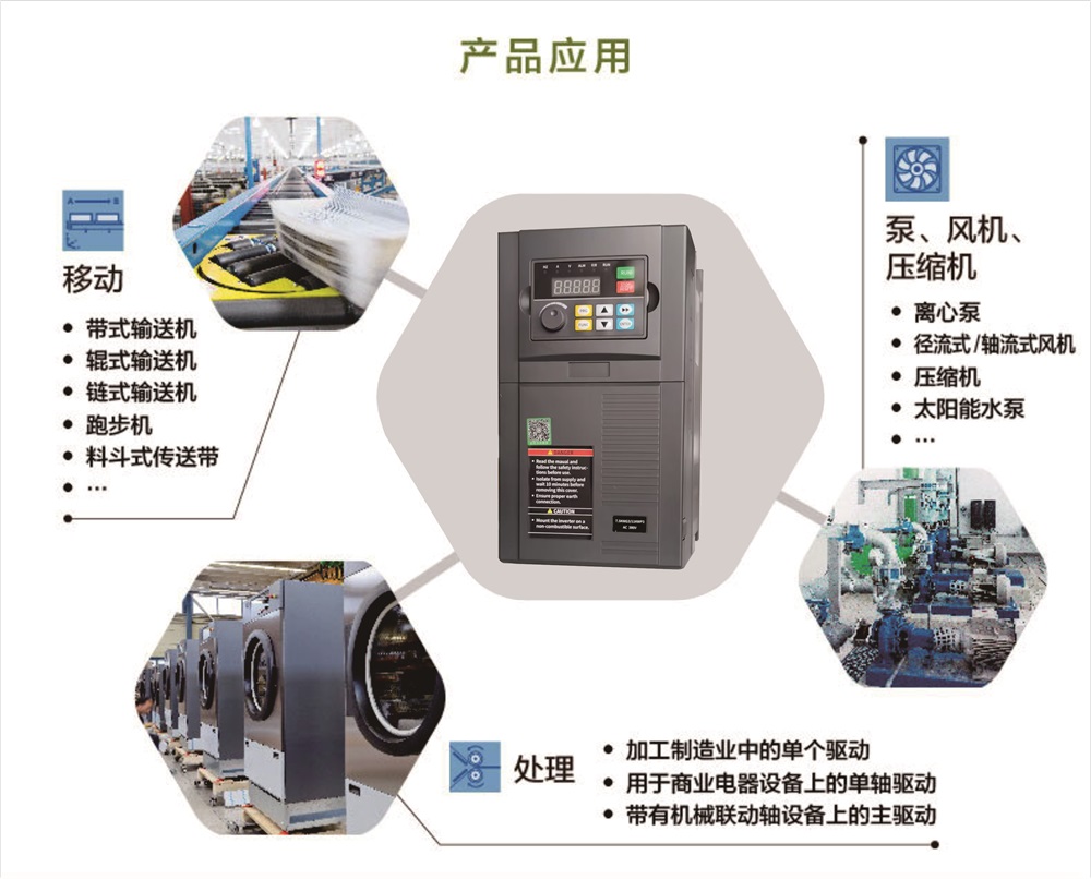 SN190PB系列变频器, 是针对传统农业、 工业及制造业等领域所研制的通用型变频器,广泛适用于风机水泵、 印刷包装、 电力建材、 冶金化工、 市政消防等行业。 该系列变频器具有性能卓越、 功能丰富、 结构精巧、 操作简单、 安全可靠、 环境适应性好等特点。