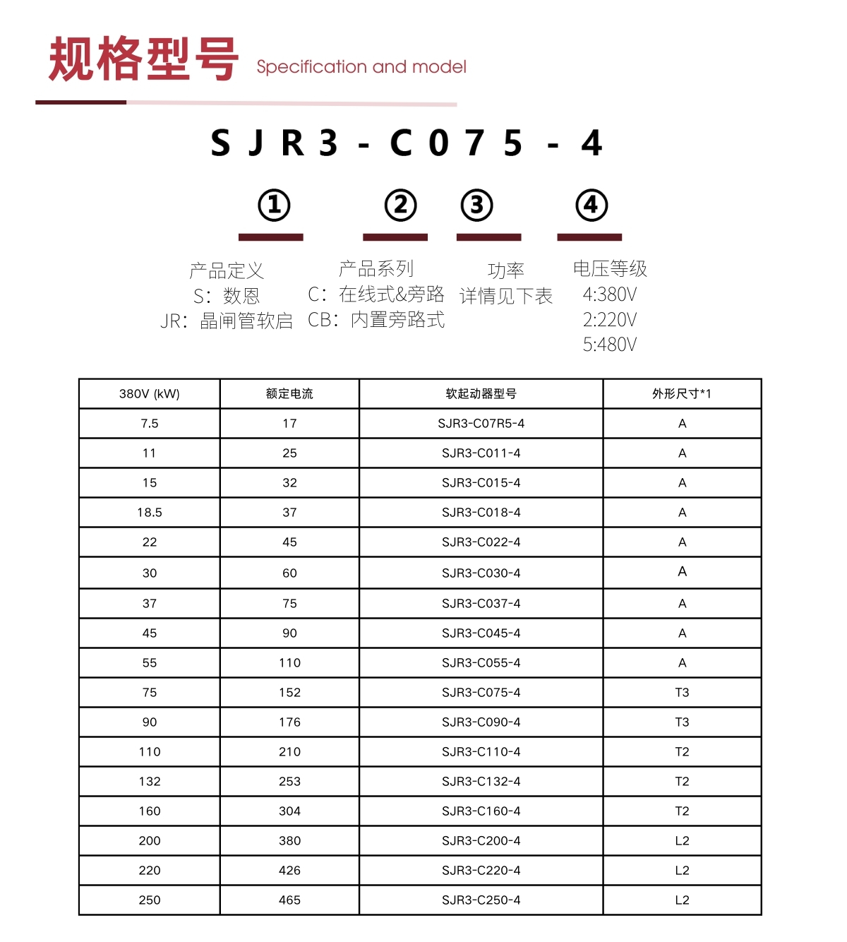 SJR3-C系列是一款多功能智能软启动器。支持在线式运行(不连接旁路接触器),也可以选配连接旁路接触器。具有用途广泛,功能丰富,保护功能完善的特点。
